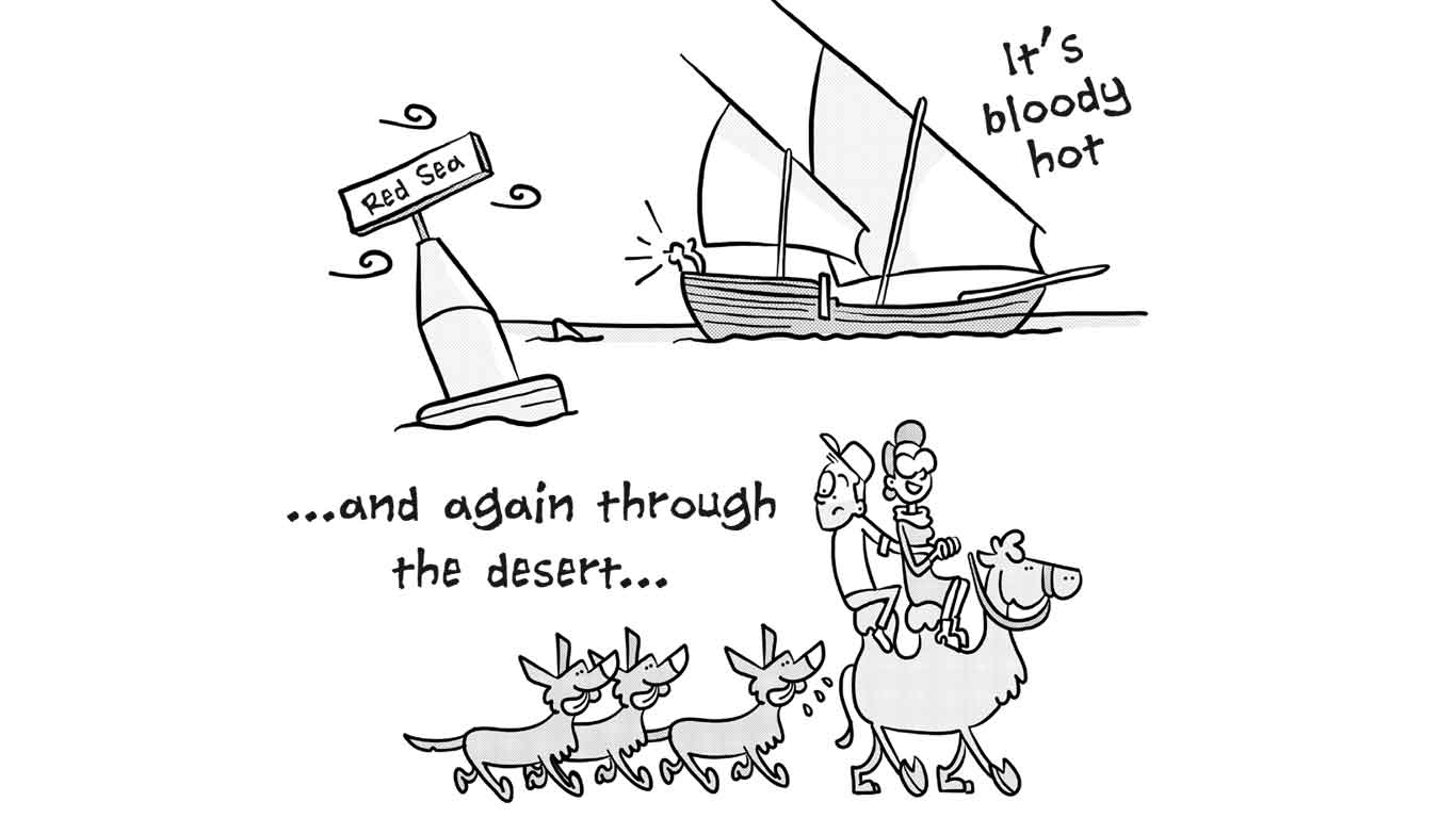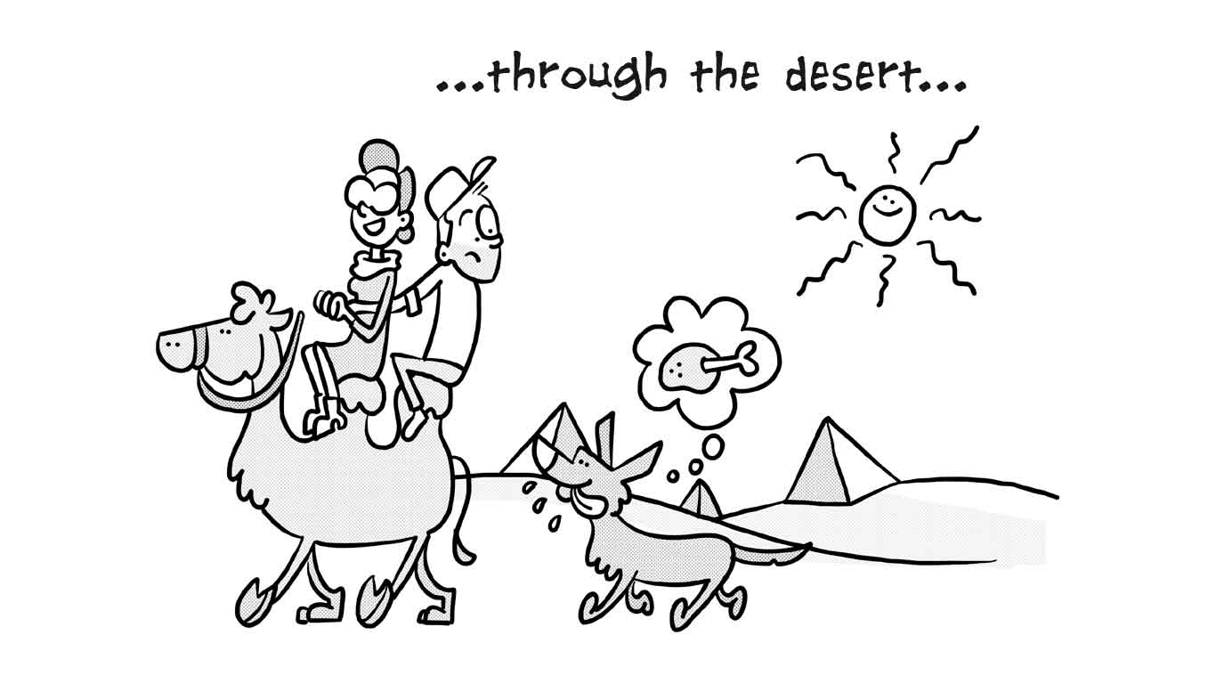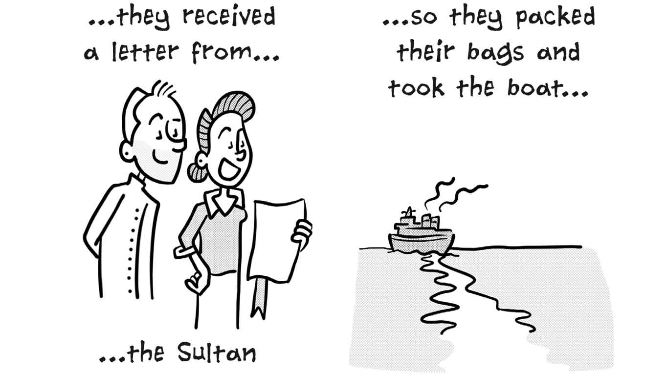 Peter Gast, jarenlang eigenaar van restaurant ’t Schulten Hues (mét 1 Michelinster) in Zutphen en inmiddels actief in onze hoofdstad met restaurant Graphite, mailde met de vraag of er een korte strip gemaakt kon worden over hun aanstaande avontuur in Oman. De strip vertelt het verhaal van het echtpaar Gast dat als twee Achterhoekse boertjes afreist naar Oman om daar hun kookkunsten te vertonen. De cartoon is geprint op A4 formaat en diende als onderlegger onder 1 van de exquise gerechten.
