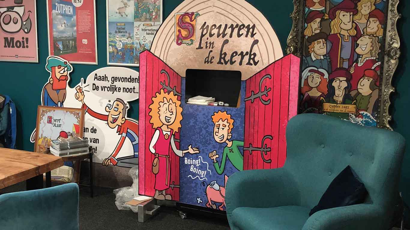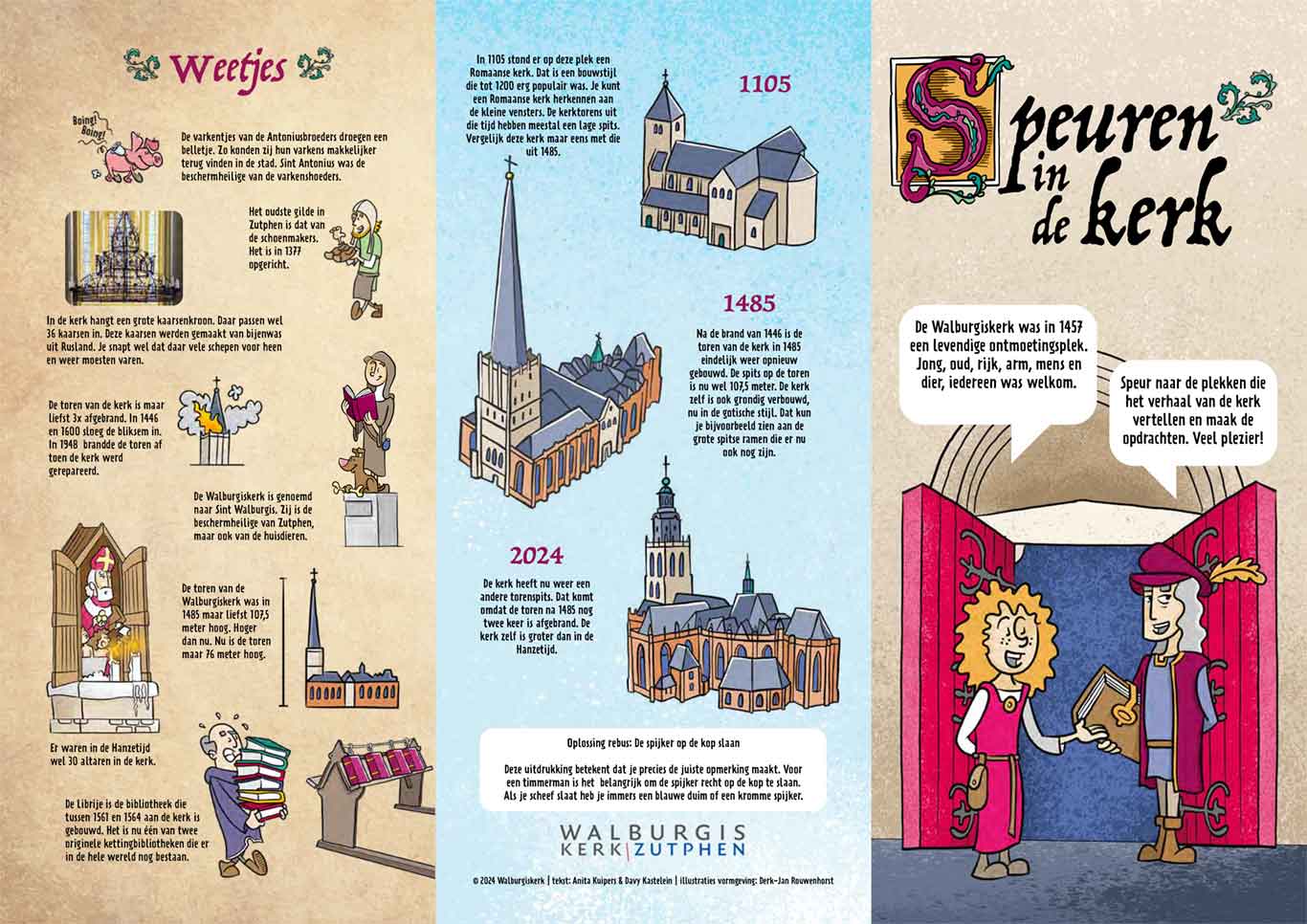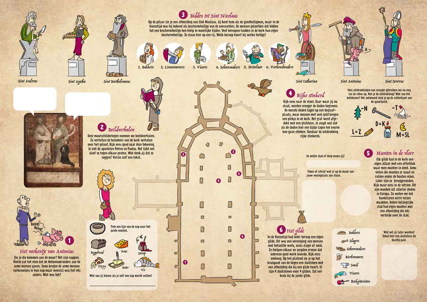 In het kader van het Hanze-project hebben wij in opdracht van de Walburgiskerk in Zutphen voor kinderen in de leeftijd van 8 tot 12 jaar een speurtocht gemaakt over de kerk in de middeleeuwen als ontmoetingsplaats. In het verhaal is duidelijk een link gemaakt met de Hanze. Zo bezochten de schippers en handelaren in die tijd de kerk om te bidden voor Sint Nicolaas, hun beschermheilige. De speurtocht bestaat uit een kaart en intro-animatie. Voor het vertonen van de animatie op scherm is een bijbehorend meubel gemaakt.